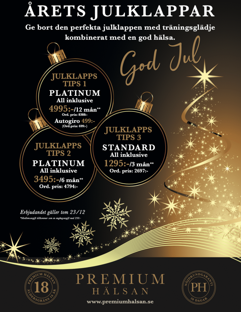 Vi är en friskvårds-kedja inom premium segmentet. Vi har noggrant genomtänkta materialval, med handplockad träningsutrustning ifrån världsledande Technogym i kombination med vårt egna unika träningskoncept Comfort Zone med eGym. På samtliga av Premium Hälsans träningsanläggningar har vi 18år gräns och du har alltid 30 dagars nöjd-kundgaranti på våra medlemskap!
