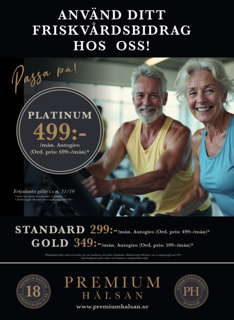 Varmt välkommen till Premium Hälsan Gislaved! Vi erbjuder en träningsanläggning i utöver det vanliga. Hos oss kan du träna i en härlig miljö med harmoniska, rofyllda och ändamålsenliga lokaler med behaglig musik. Du som är medlem på Premium Hälsan kan träna varje dag mellan 05:00-23:00. Vi har lagt mycket tid , omsorg och tanke när vi har planerat våra träningsanläggningar och vi har 18års gräns på samtliga av våra anläggningar.